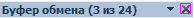 Буфер обмена может содержать до 24 элементов. В Excel не имеет значения, что копировать - таблицу, столбец, строку, содержимое ячейки или просто текст - все это отдельные элементы, независимо от объема их информации. При копировании 25-го элемента автоматически удаляется первый.
