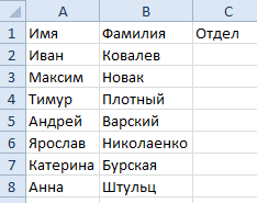 - В ячейках C2 и C3 введите текст «логистика», «администрация».
