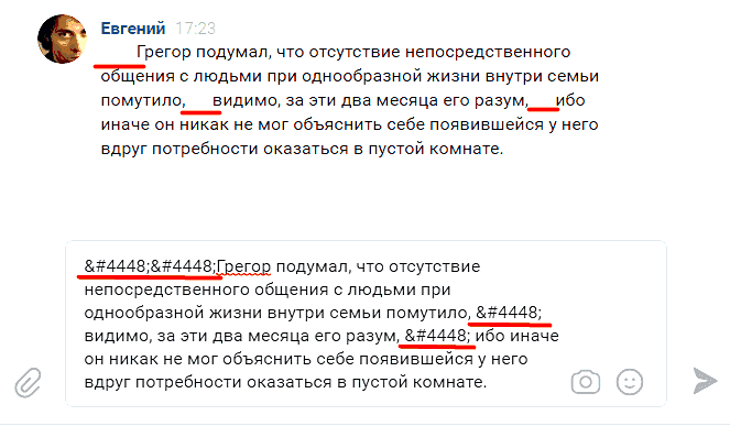 ВК не позволяет добавлять сколь угодно большие пробелы между абзацами. Поэтому для его добавления мы будем использовать специальные символы HTML или мнемонику, которые пользователи социальных сетей называют просто «пустыми кодами» или «пространственными кодами”.
