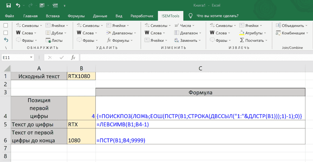Разбить текст и цифры с !SEMTools в 2 клика