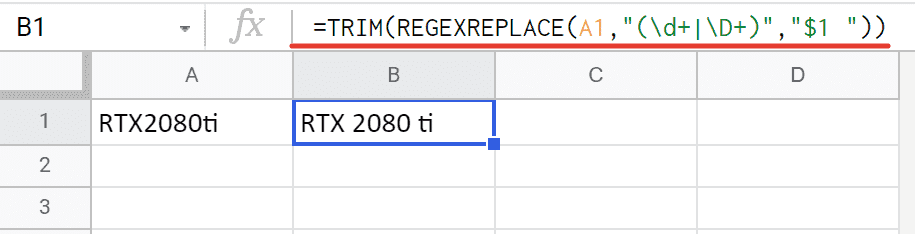 Формула электронной таблицы Google, разделяющая текст и числа, довольно проста: