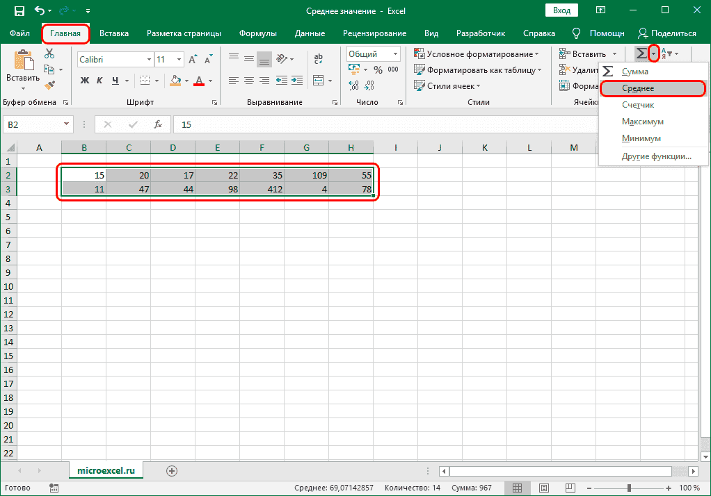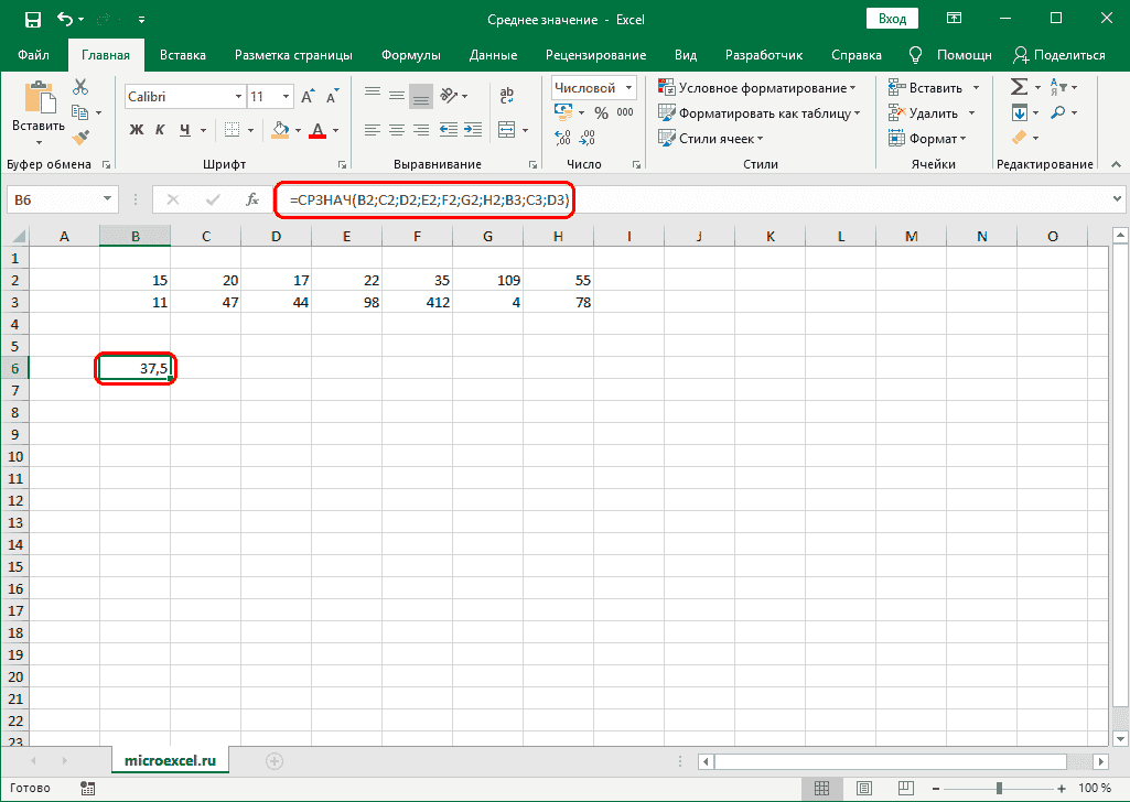 Среднее значение через формулу в Эксель