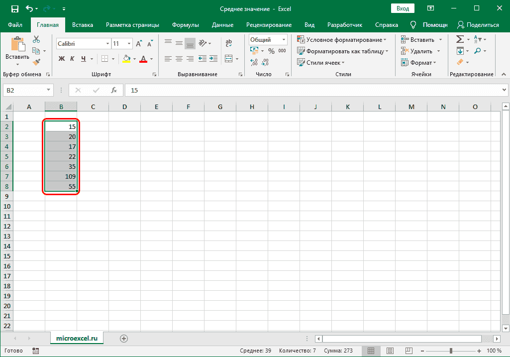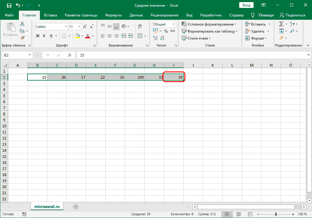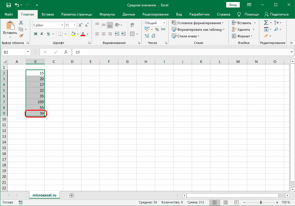 Как известно, среднее значение равно сумме чисел, разделенных на их количество. Эту формулу также можно использовать в Excel.