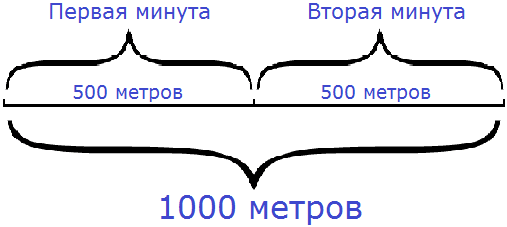 Если мы проедем 500 метров за одну минуту, сколько из этих минут с пятью сотнями метров будет в 1000 метрах?