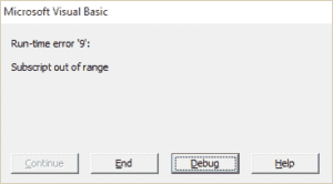 Ошибка выполнения 9 Подстрочный индекс вне допустимого диапазона