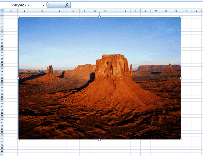 Однако фотография занимает видимую часть рабочего листа и ограничена своим разрешением.
