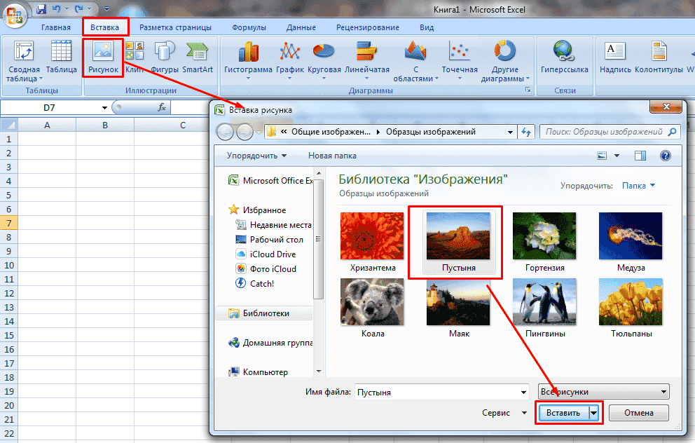 Как вставить в файле эксель картинку, фото