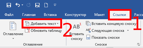Затем перейдите на вкладку «Ссылки», найдите группу «Сводка» и нажмите кнопку «Добавить текст».
