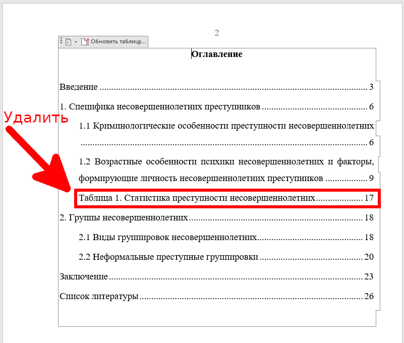 2. Исключение из оглавления