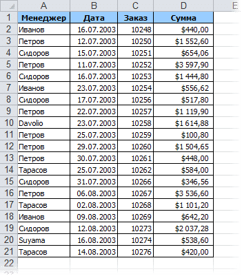 Нам нужно выяснить, например, какова была сумма третьего заказа Иванова или когда Петров заключил свою вторую сделку. Встроенная функция ВПР может искать только первое вхождение фамилии в таблице и нам не поможет. Вопросы типа "Кто отвечал за заказ номер 10256?" тоже останется без ответа, т.к. Встроенная функция ВПР не может отображать значения из столбцов слева от столбца поиска.