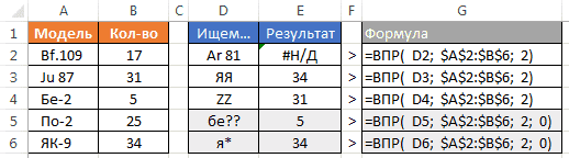 Конечно, ВПР ищет не только числа, но и текст. При этом следует учитывать, что формула не различает регистр символов. Если вы используете подстановочные знаки, вы можете организовать нечеткий поиск. Есть два символа подстановки: "?" - заменить любой символ в текстовой строке, «*» - заменить любое количество любого символа.