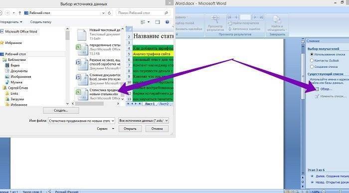 Слияние документов в Word и Excel, пошаговая инструкция