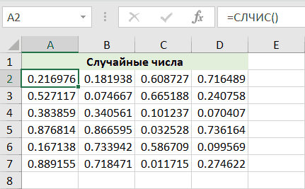 - Случайные числа в указанном диапазоне с использованием функции СЛУЧАЙНЫЙ МЕЖДУ