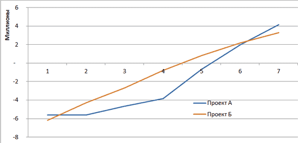 В нашем примере проект «А», хотя он окупится на 1 год позже, чем «Б», принесет инвестору большую прибыль в будущем: