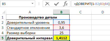 Как посчитать доверительный интервал по функции ДОВЕРИТ в Excel
