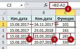 Количество дней между двумя датами в Excel