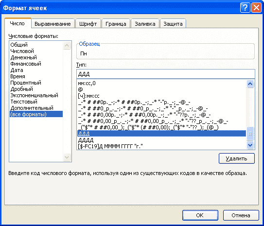 В ячейке с пользовательским форматом ДДД или ДДДД содержится Дата