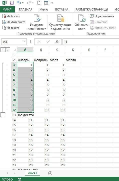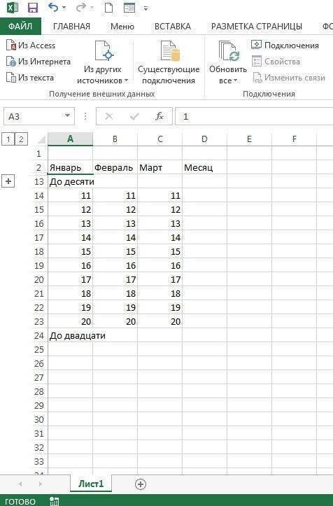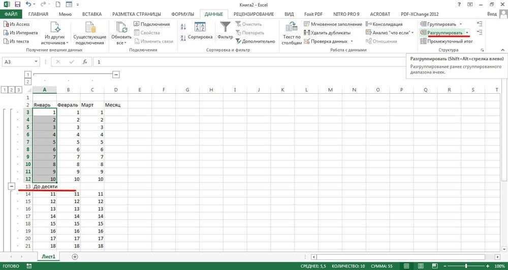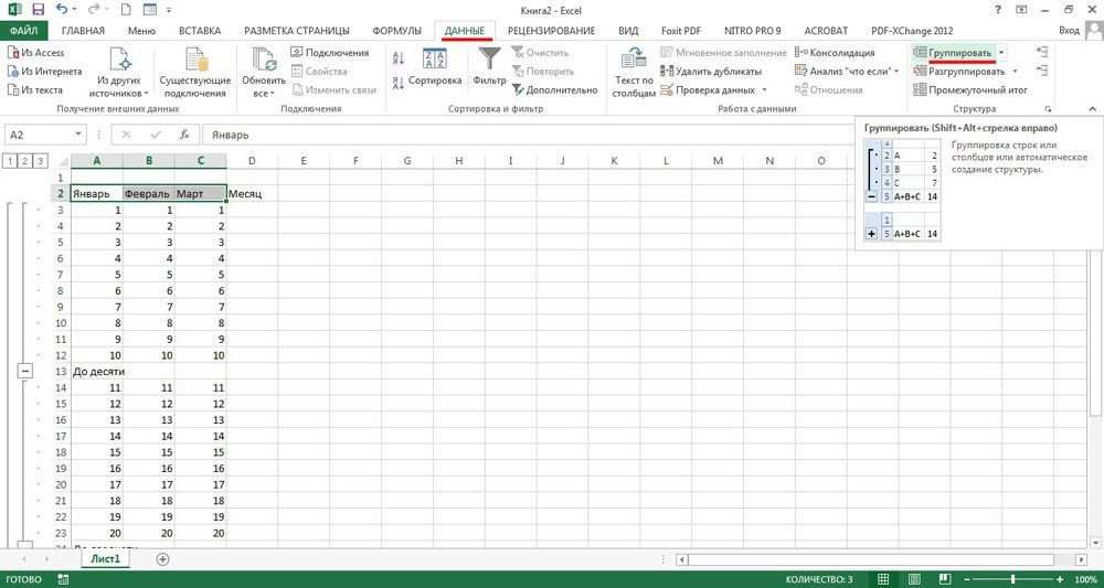 В Excel вы можете группировать строки и столбцы, объединять их в разные категории, создавать вложенные списки. Также есть функция подсчета промежуточных итогов.