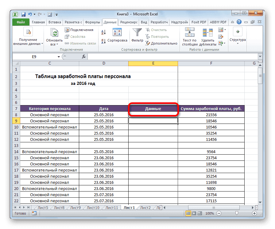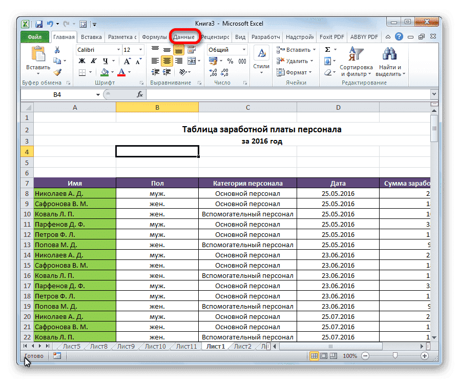 Выберите строки для группировки, кроме последней строки. Переходим во вкладку «Данные».