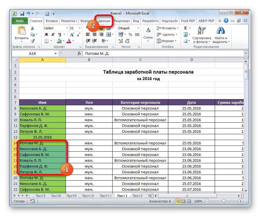 В группе «Порядок» есть запись «Пользовательский список», нажав на которую, вы можете воспользоваться предложением для сортировки по спискам Excel или создать свой собственный. Таким образом можно объединить данные по дням недели, с одинаковыми значениями и т.д.