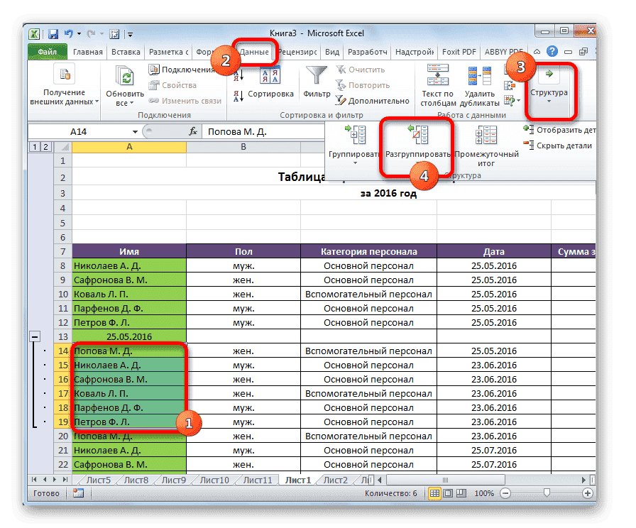 Теперь вы разобрались, как группировать строки в Excel, и опробовали это на практике. Но как теперь удалить созданные комбинации, чтобы таблица выглядела нормально и отображался весь текст? Просто следуйте инструкциям.