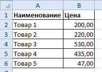 Допустим, у нас есть прайс-лист без нумерации позиций: