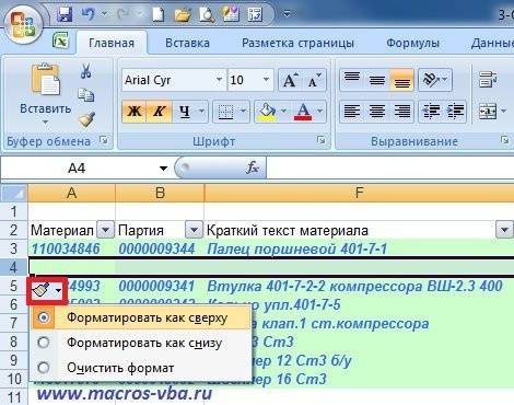 Выберите несмежный диапазон из двух ячеек A1; A4 (обратите внимание, что вместо символа «:» стоит символ «;» - это значит, выберите 2 несмежных диапазона, для убеждения введите A1; A4 в поле имени и нажмите Enter). Вы уже знаете, как выбирать несмежные диапазоны из предыдущих уроков.