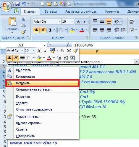 После выбора строк необходимо щелкнуть правой кнопкой мыши выделенную область листа и выбрать пункт «Вставить» из контекстного меню или использовать кнопки на вкладках ленты, как описано в предыдущем абзаце.