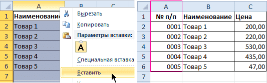 Как в Excel вставить столбец между столбцами?