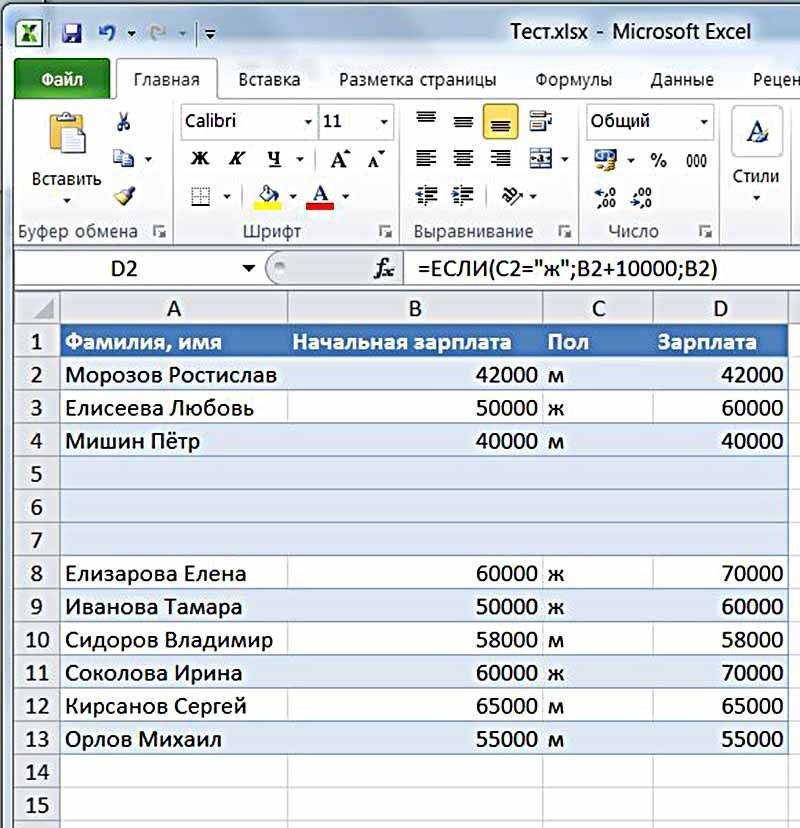 В столбце D таблицы заработная плата рассчитывается по следующей формуле.