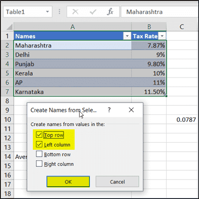 Вы также можете разрешить Excel называть диапазон или ячейки таблицы.