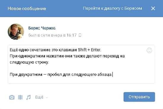 Как перейти на следующую строку в ВК с помощью 2 горячих клавиш