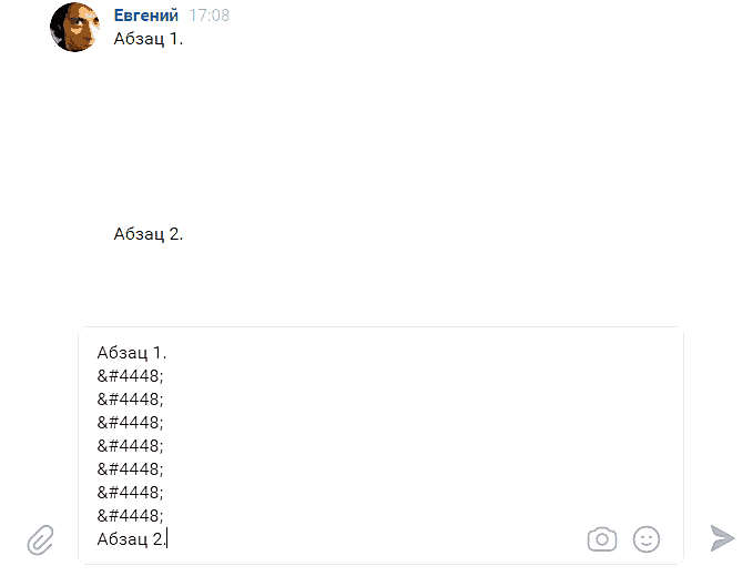 ВК не позволяет добавлять сколь угодно большие пробелы между абзацами. Поэтому для его добавления мы будем использовать специальные символы HTML или мнемонику, которые пользователи социальных сетей называют просто «пустыми кодами» или «пространственными кодами”.