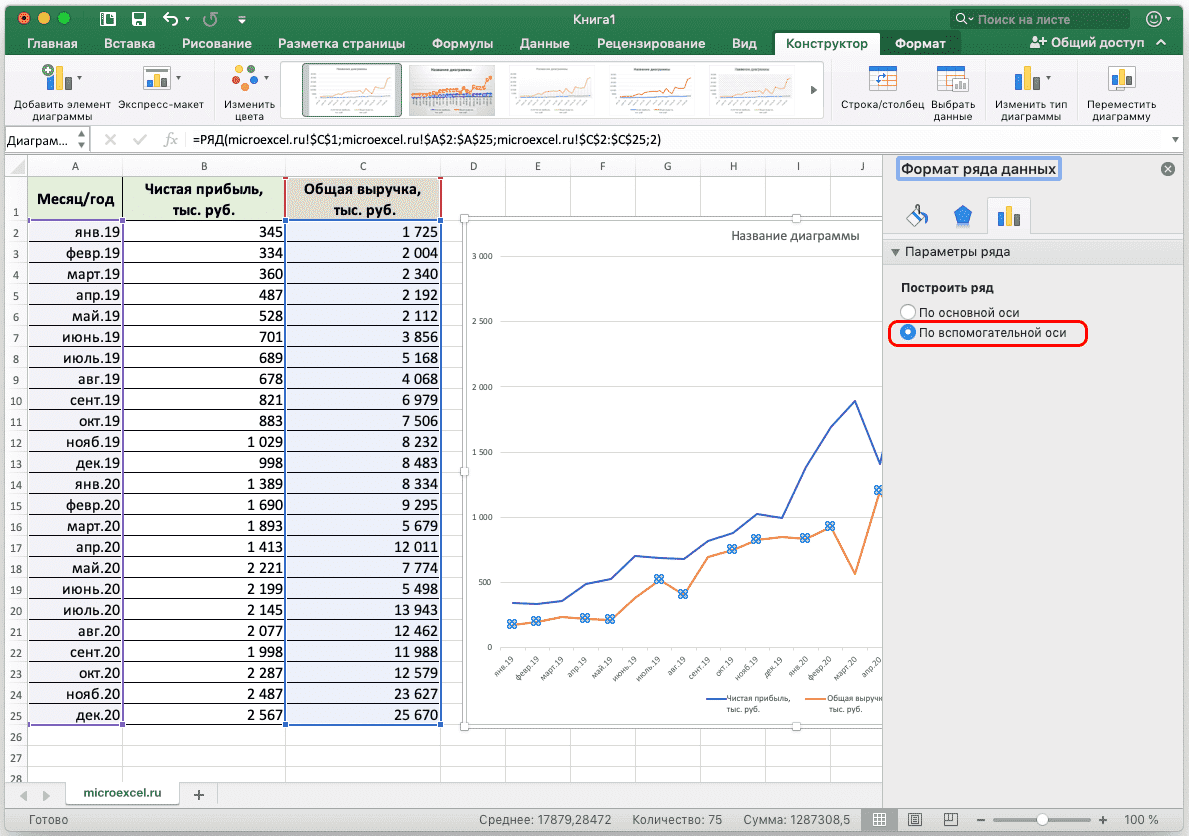 Как добавить вторую (дополнительную) ось? Если единицы одинаковы, используйте приведенные выше инструкции. Если вы хотите отображать разные типы данных, вам понадобится вспомогательная ось.