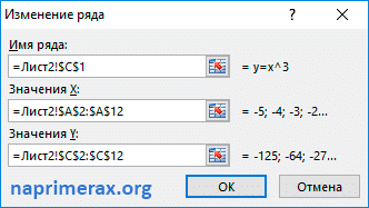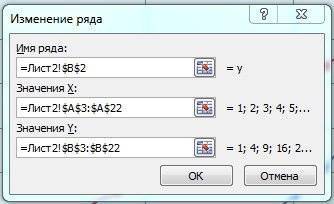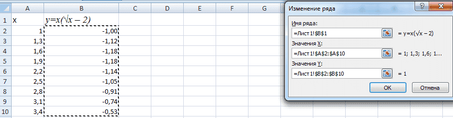 Excel: методика создания графика функции