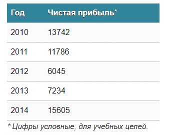 Допустим, у вас есть таблица, в которой представлена информация о чистой прибыли компании за последние пять лет.