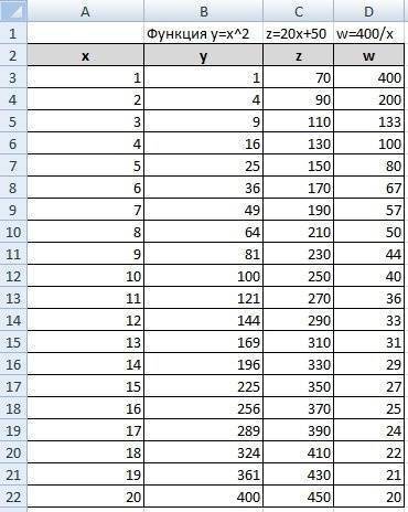Создание таблицы и вычисление значений функций