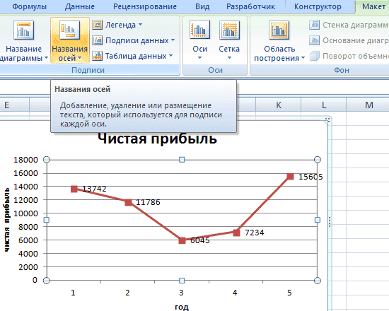 Для большей информативности нашей диаграммы в Excel можно пометить оси. Из-за этого: