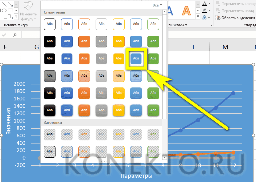 - Вы можете изменить фон, не изменяя тип диаграммы, в разделе «Стили фигур».