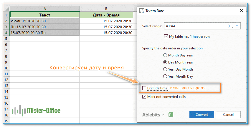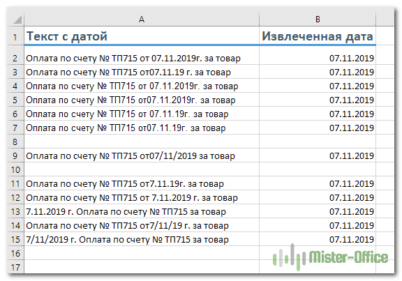 Как преобразовать текст в дату в Excel или извлечь его из сложного предложения?