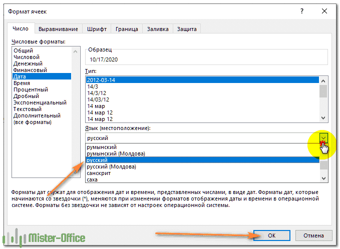 Чтобы применить настраиваемый формат, отличный от формата по умолчанию, выберите ячейки с этими числами и нажмите Ctrl + 1, чтобы открыть диалоговое окно «Формат ячеек». На вкладке «Число» выберите «Дата», укажите желаемый формат даты в разделе «Тип» и нажмите «ОК».