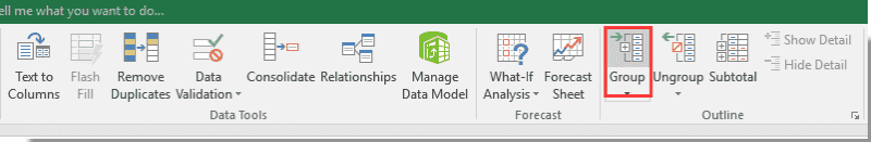 1. Выделите целые строки или столбцы, которые вы хотите скрыть или отобразить со знаком плюс или минус, затем щелкните Группировать в группе структуры на вкладке «Данные». Смотрите скриншот: