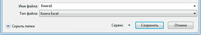 В диалоговом окне выберите место для сохранения книги, введите имя файла, затем щелкните значок в строке «Тип файлов».