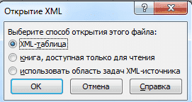 - Метод открытия: XML-таблица. OK.