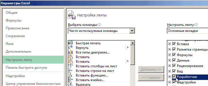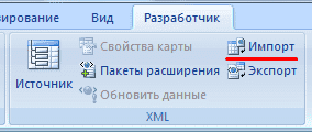 - Меню разработчика - вкладка «Импорт».