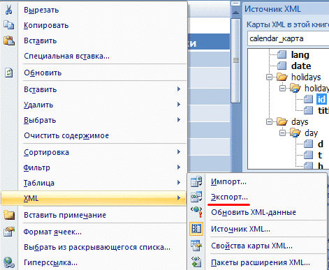 - Мы экспортируем данные таблицы в формате XML.