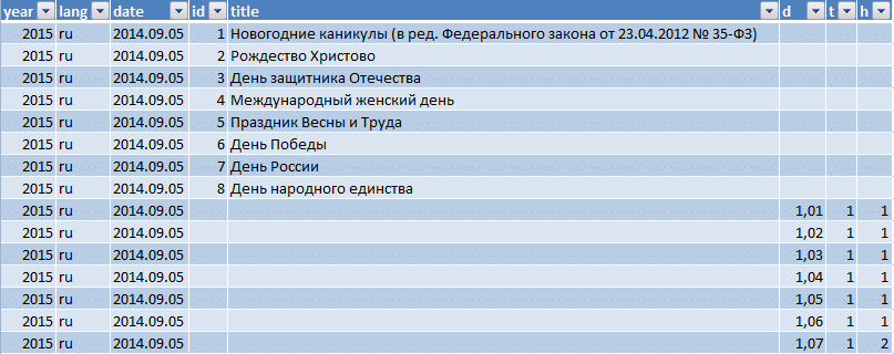 - Наша таблица - это производственный календарь.
