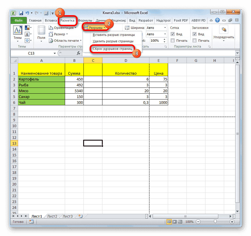 Кроме того, рабочий лист Excel можно также пометить длинными пунктирными линиями. Эта разметка называется разрывом страницы. Его можно включить только вручную, поэтому для его отключения нужно произвести некоторые манипуляции в программе. Эти разрывы включаются, если вы хотите распечатать определенные части документа отдельно от основного текста. Но такая необходимость не всегда существует, кроме того, эту функцию можно включить по неосторожности, и в отличие от простого макета страницы, видимого только с экрана монитора, эти зазоры фактически разорвут документ при печати, что в большинстве случаев неприемлемо... Так что актуальным становится вопрос об отключении этой функции.