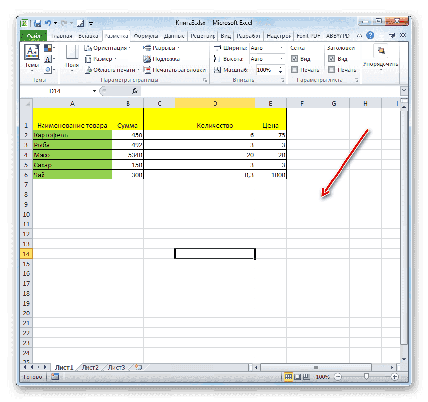 Первый вариант. Удаляем пунктирные линии из программы Excel навсегда.