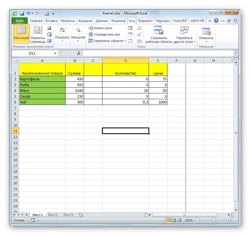 - Перейдите на вкладку «Просмотр». На ленте на панели инструментов «Режим просмотра книги» нажмите кнопку «Обычный».